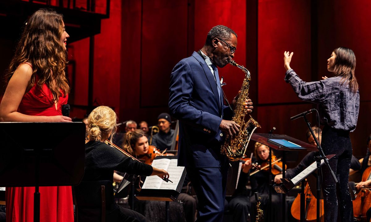 Soloist was the American saxophonist Mark Gross. Gross used to be one of the regular guest teachers in our New York comes to Groningen programme of the jazz department. In addition to being a celebrated jazz saxophonist, he made his appearance in several Broadway musicals and in a number of films and series, such as Malcolm X and Boardwalk Empire.