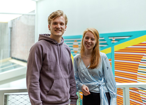 Hessel blikt terug op de periode na de middelbare school toen hij net begon aan de opleiding Docent Muziek. ‘Het was wennen, ik vond het een grote switch. Op mijn middelbare school in Friesland was ik de enige pianist. Hier trof ik allemaal anderen die ook goed zijn in muziek.’ Pien reageert: ‘Dat is leuk en intimiderend tegelijkertijd. Vooral in het begin, omdat je dan nog niet zo goed weet waar je staat en wie je bent. Dat is een kwestie van zelfvertrouwen, wat groeit in de loop der tijd.’ Hessel vult aan: ‘Je komt er ook wel achter dat iedereen zo zijn of haar plek aan het zoeken is. Nu ben ik daar helemaal in gegroeid en merk ik hoeveel ik heb geleerd. Ook over mezelf. Eerst wist ik niet zo goed wie ik was of wat ik wilde en met de ruimte die ik heb gekregen ben ik veel zekerder geworden van mezelf. Je ontwikkelt jezelf op zo veel vlakken.’